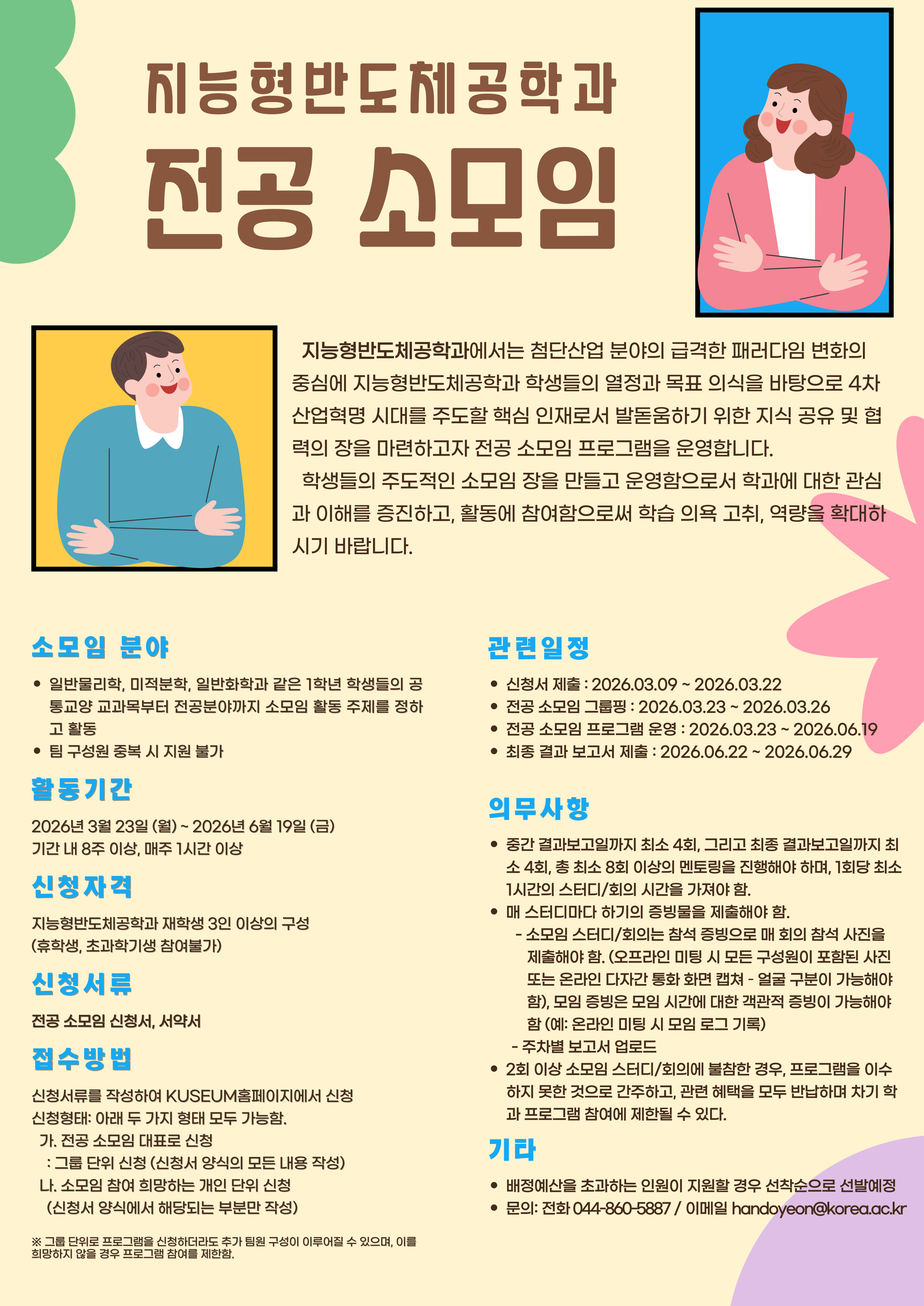 3. 신청자격: 지능형반도체공학과 재학생 3인 이상의 구성(휴학생, 초과학기생 참여불가)