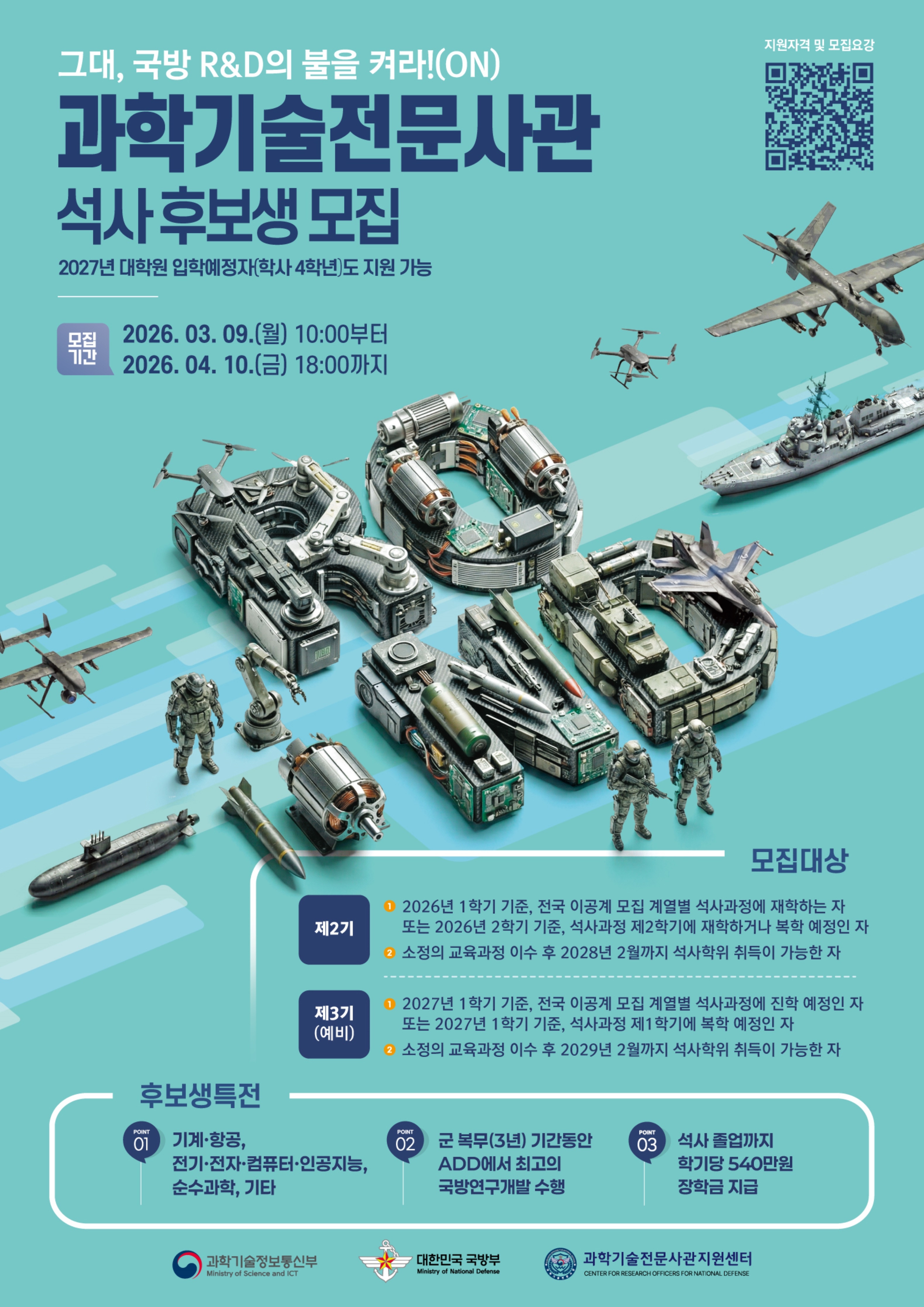 2026 과학기술전문사관 제2기 및 3기(예비) 석사 후보생 모집선발