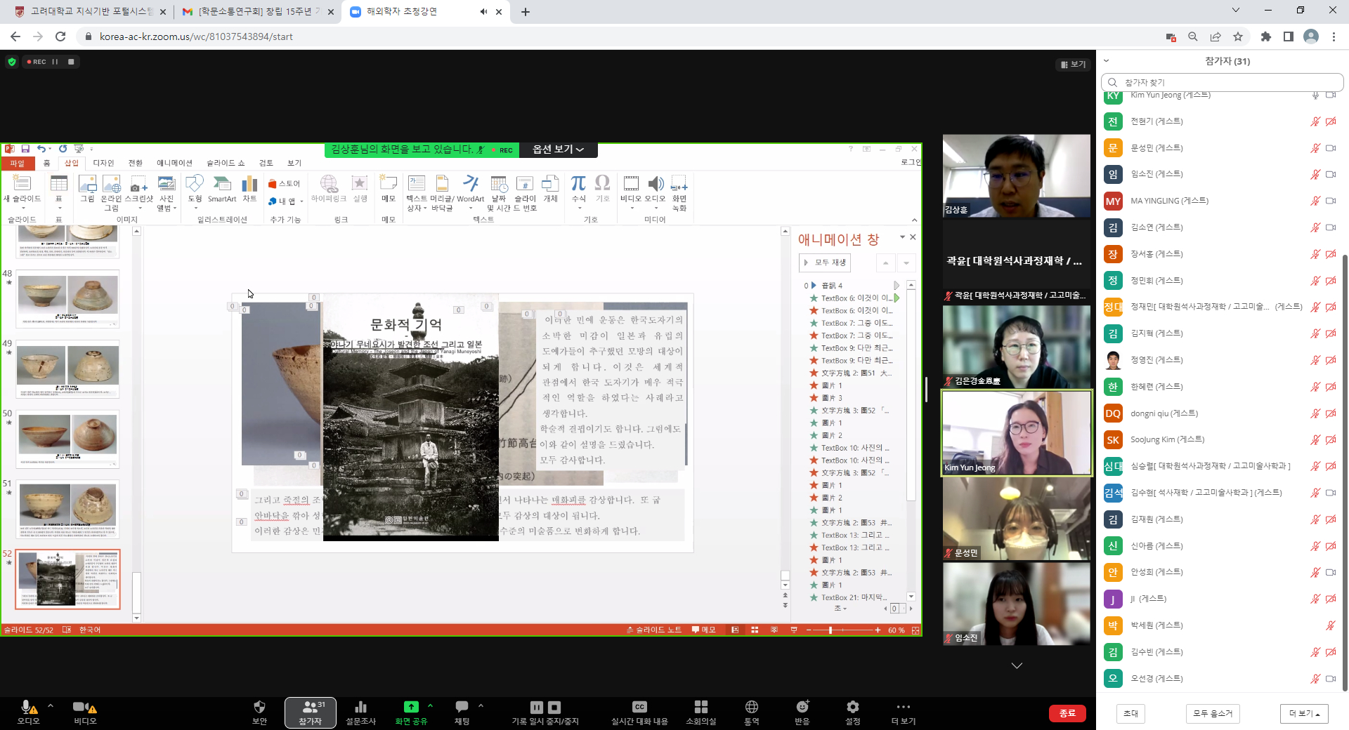 ▷동아시아 도자 중 한국 도자의 의의라는 제목으로 한반도 내에서 확인되는 도자들의 형식과 중국 내에서 확인되는 도자들의 양상 등을 중심으로 진행되었습니다.