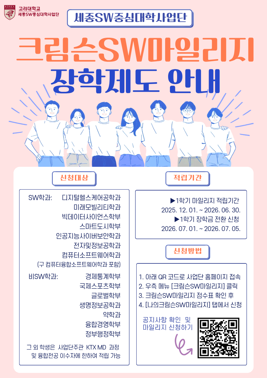 [세종SW중심대학사업단] 2026-1학기 크림슨SW마일리지 제도 안내