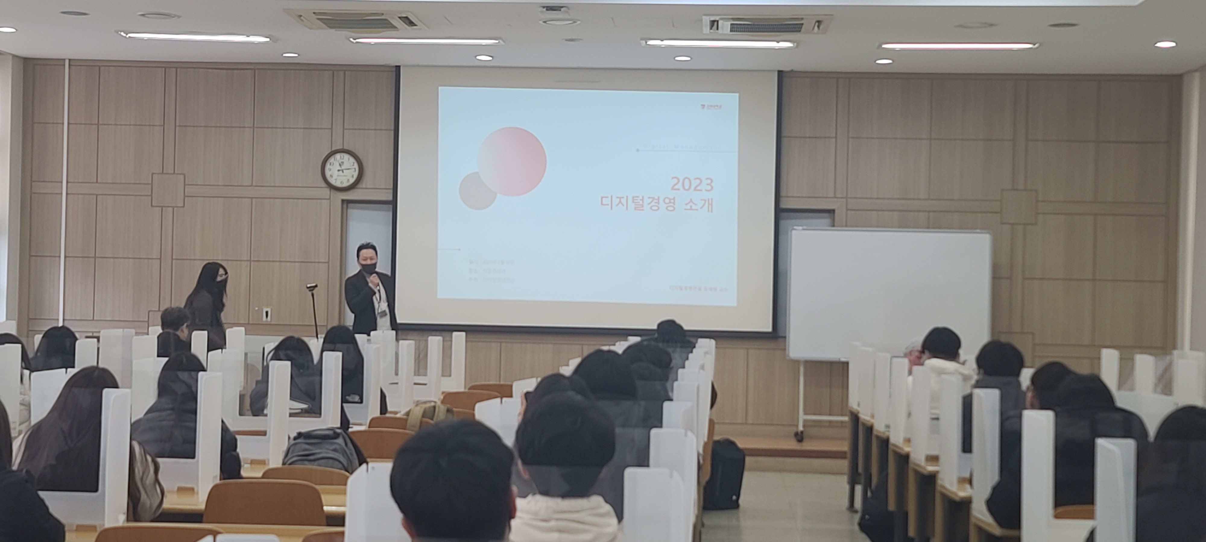 이른 시간에도 많은 신입생 분들이 참가하였으며 학교 소개 및 디지털경영전공의 소개 시간을 가지며 신입생 분들의 학과 이해에 많은 도움을 주었습니다.