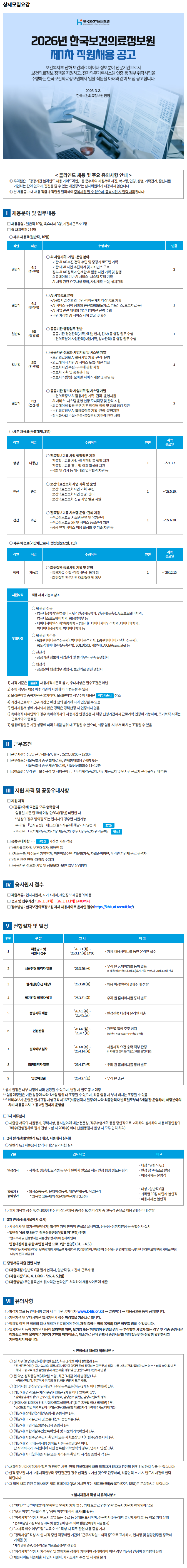 2026년 한국보건의료정보원 제1차 직원 채용 공고 (전산/행정) 안내드립니다.