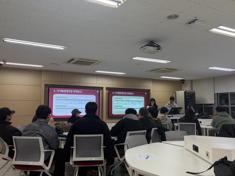 지난 12월 3일 수요일 오후 6시 30분, 석원경상관 323호에서 디지털경영전공 2025학년도 2학기 종강총회가 진행되었습니다.