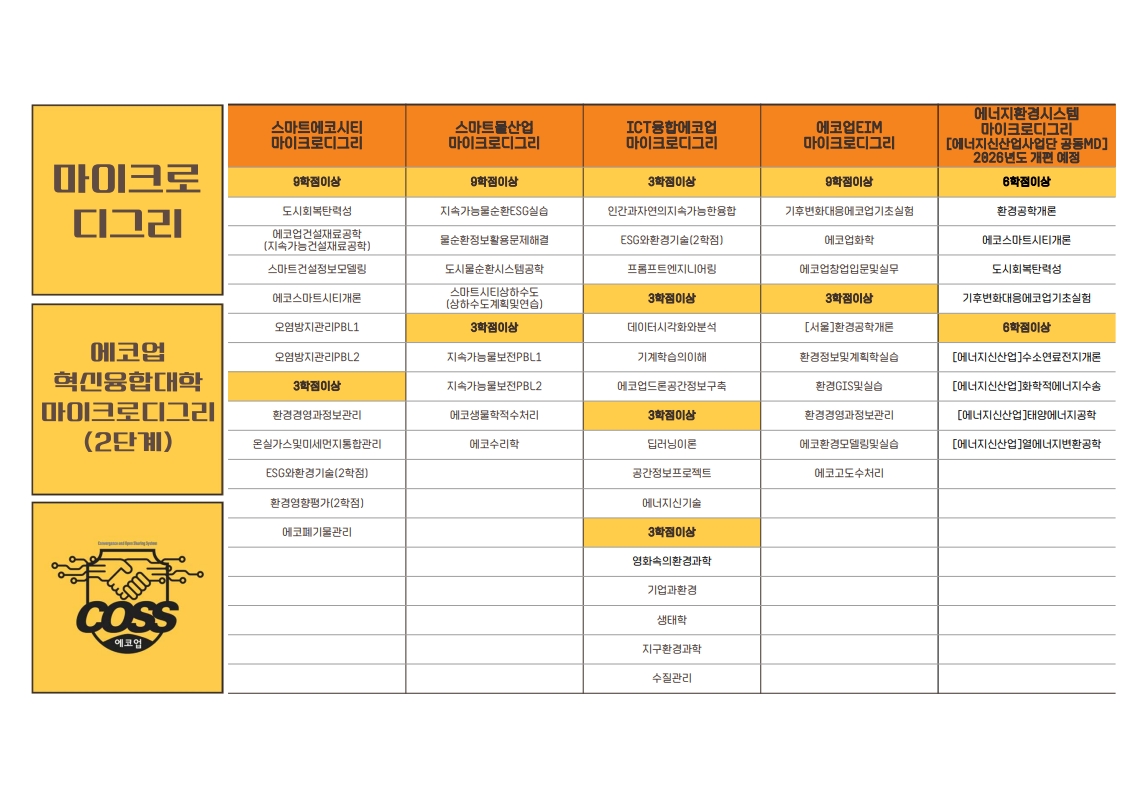[교육과정표]스마트에코시티융합전공, 마이크로디그리
