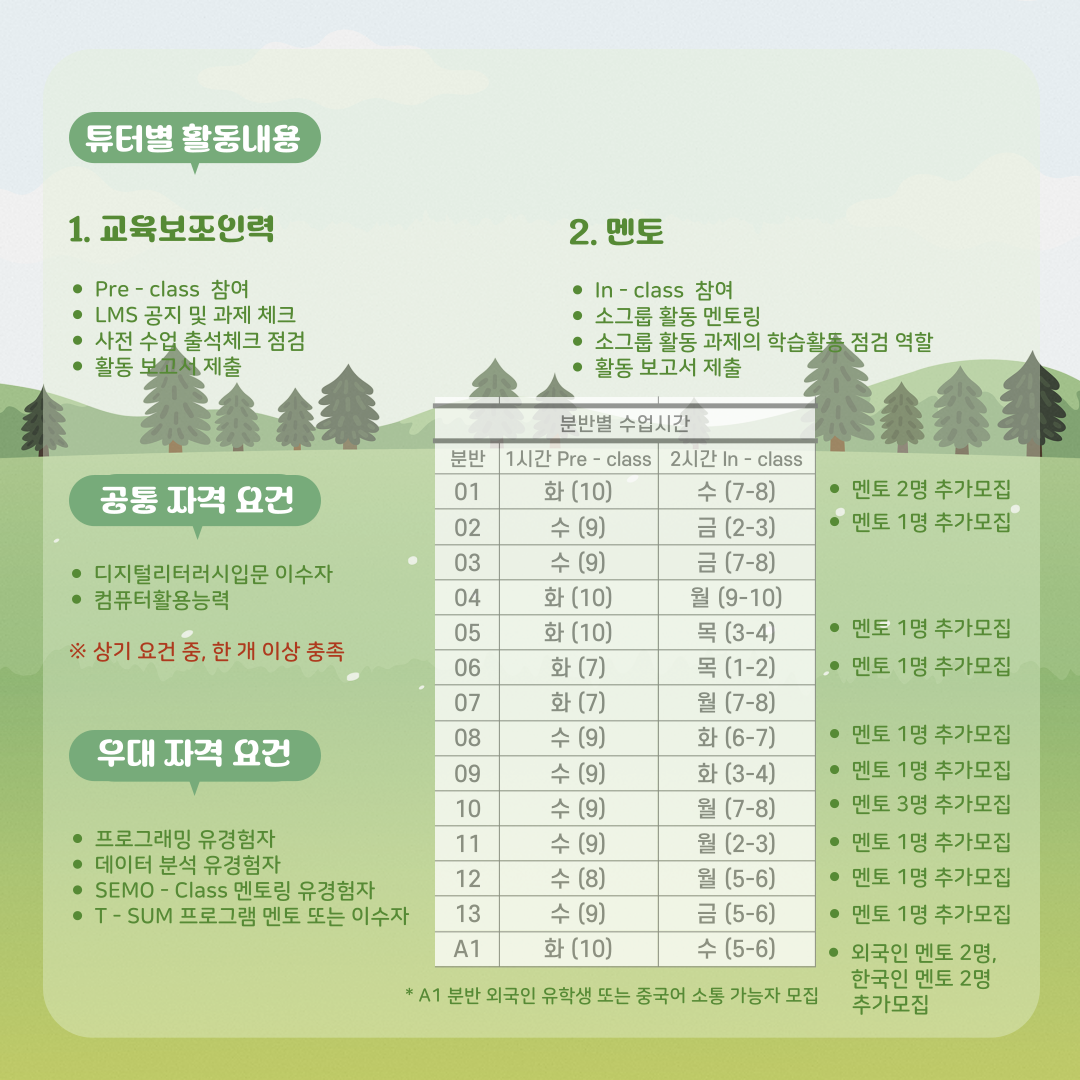 멘토 지원자는 2시간 In-class와 본인의 수업 시간이 중복되지 않아야 합니다.