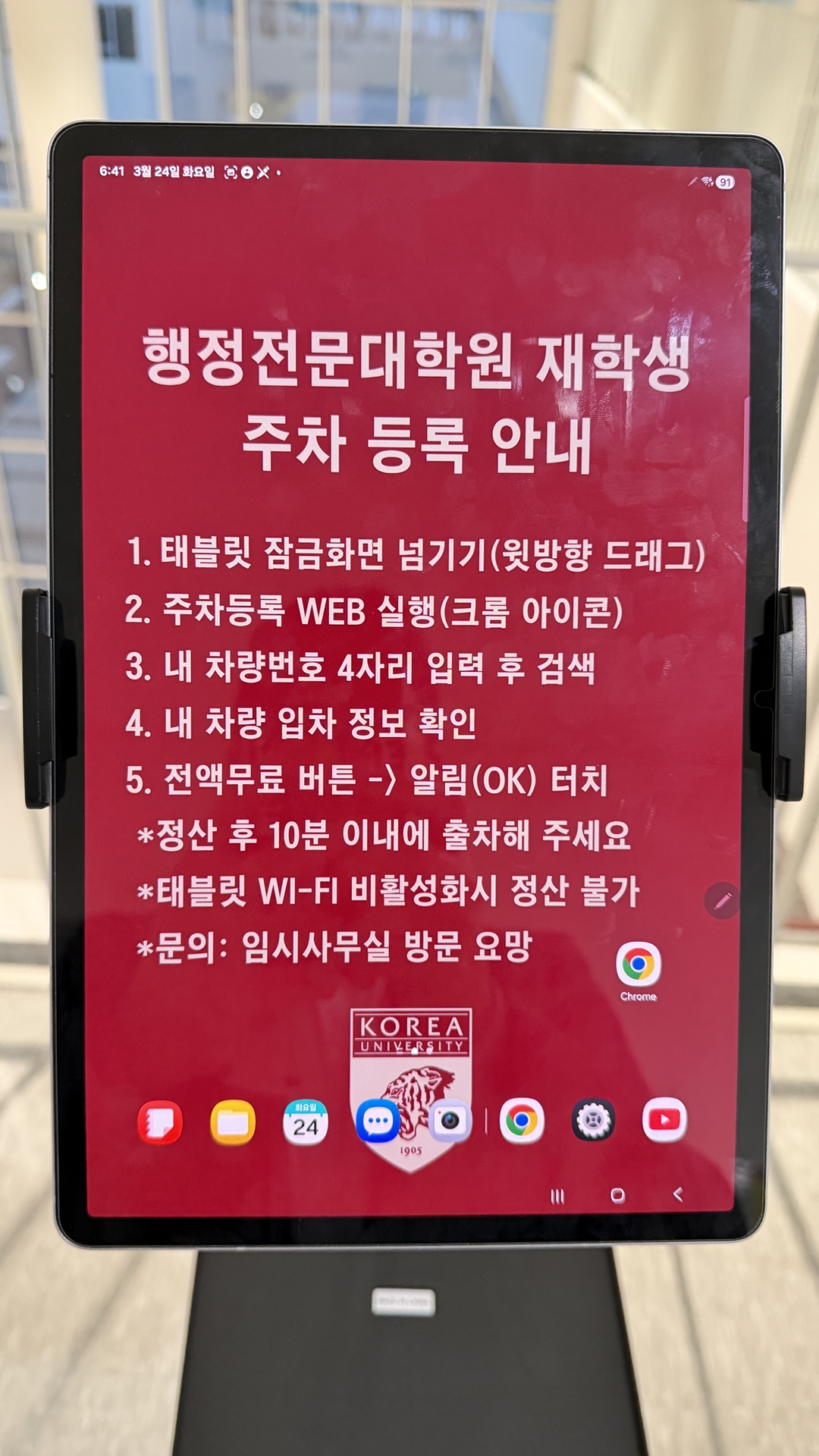 * 출차 시한: 정산 완료 후 10분 이내에 출차하셔야 합니다.