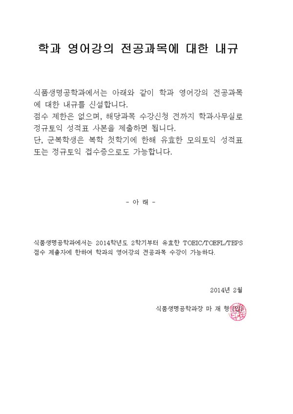 일반공지 학과 영어강의 전공과목에 대한 내규 식품생명공학과 2018.11.30 0 1693 첨부파일