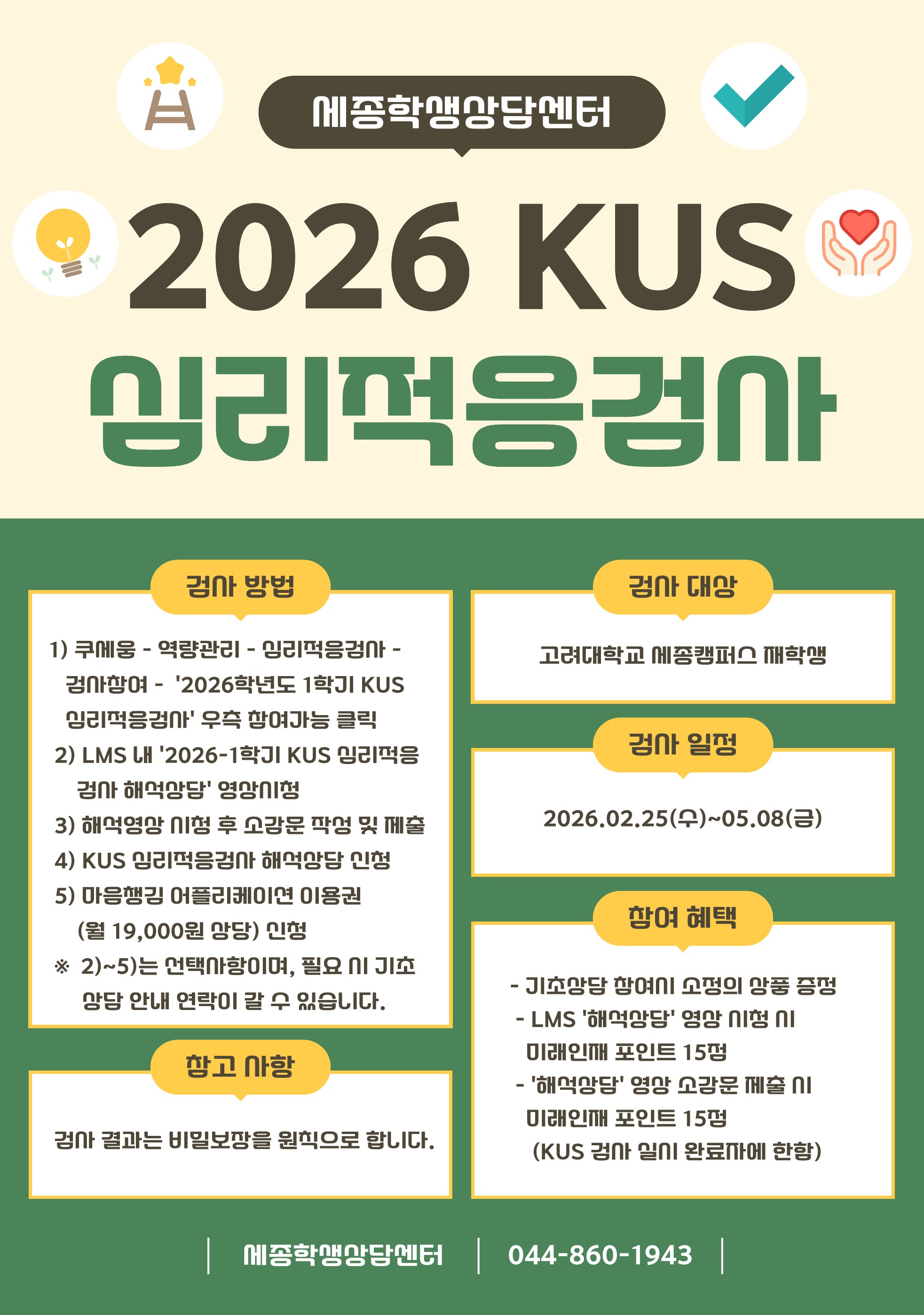 904 2026학년도 1학기 KUS 심리적응검사 안내 식품생명공학과 2026.03.05 0 27