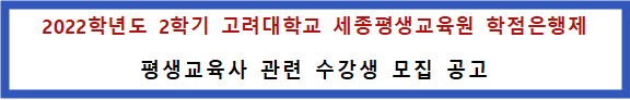 교과목 이수 후 고려대학교 세종평생교육원장 명의의 수료증명서 발급 가능