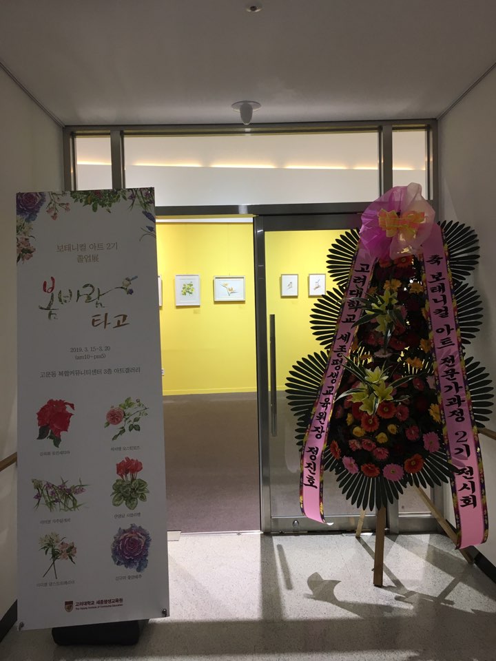 2019년 3월 15일 부터 20일까지 세종시 고운동 복합커뮤니티센터 3층 아트갤러리에서 열렸던 보태니컬 아트 전시회 사진입니다.