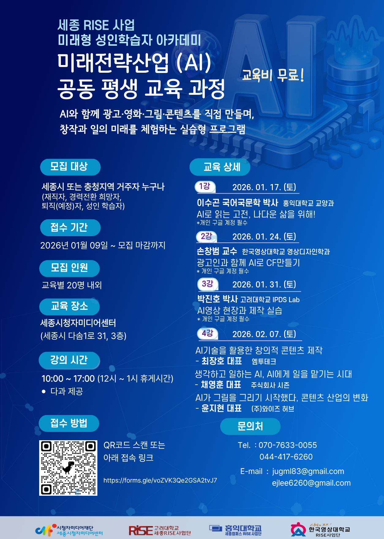 [세종RISE사업] 미래전략산업(AI) 공동 평생 교육 과정 수강생 모집