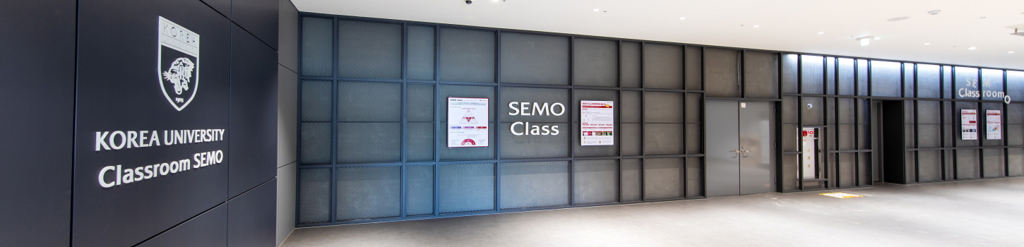 미래형 인재 양성을 위한 창의·문화 융합공간인 Classroom SEMO 인프라 구축 기금 SEMO(Student Engaged MOdular) Class는 고려대학교 세종캠퍼스의 독자적인 Flipped Class(온·오프라인 병행 수업)로 학습자 중심의 교육혁신 모델입니다.
